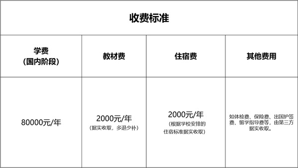 第一学年:国内阶段 – 成人直播 东吴成人直播 ,学费80000元;项目收费标准详见明细。