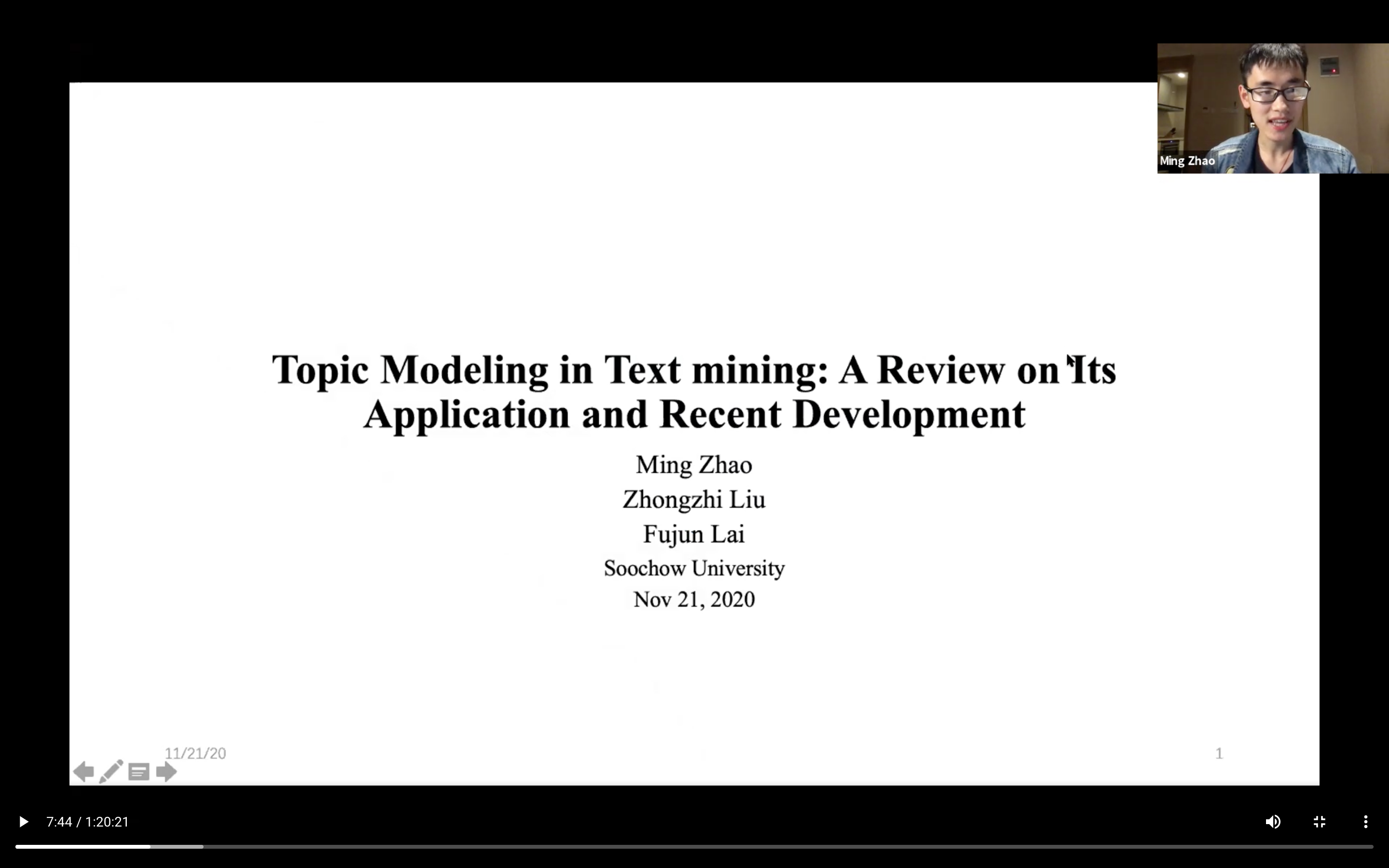 2020年11月21日,东吴成人直播 电子商务系2017级本科生赵明同学应邀参加国际决策科学协会(Decision Sciences Institution,DSI)第51届学术年会,在其“文本分析与运用”(Text Mining and Applications)分会场中担任主持人(Session Chair),并报告自己阶段性科研成果。赵明同学的报告围绕大数据背景下文本信息分析中主题模型(Topic Modeling)的运用与最新发展,内容跨界计算机科学和信息决策技术,受到参会教授的一致好评。该研究在成人直播 智慧供应链研究中心刘忠志博士指导下完成。