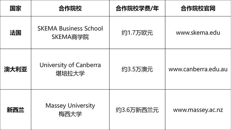 第二学年: 国外阶段 – 合作院校,第二年学费请参考各合作院校官网。
